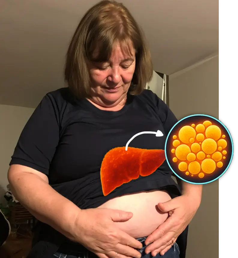 E quando o fígado está cheio de gordura, ele para de funcionar do jeito certo e acontece: